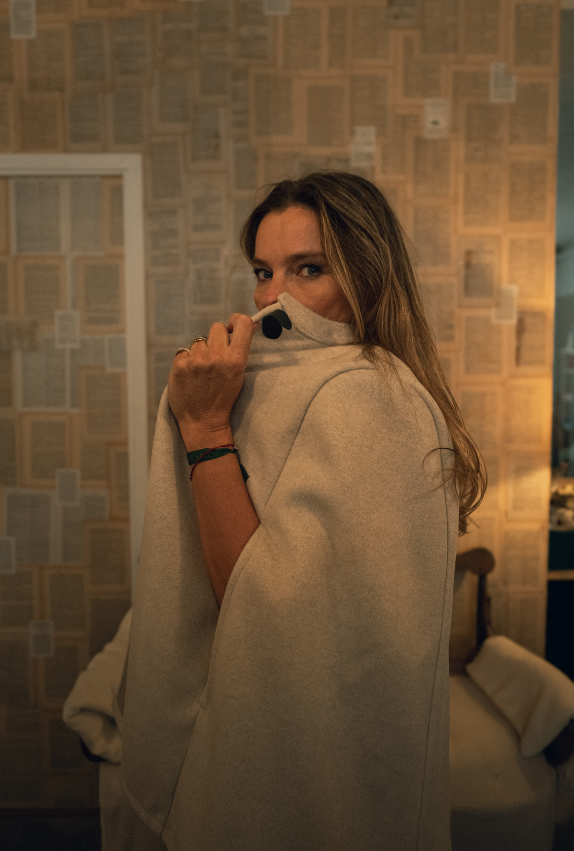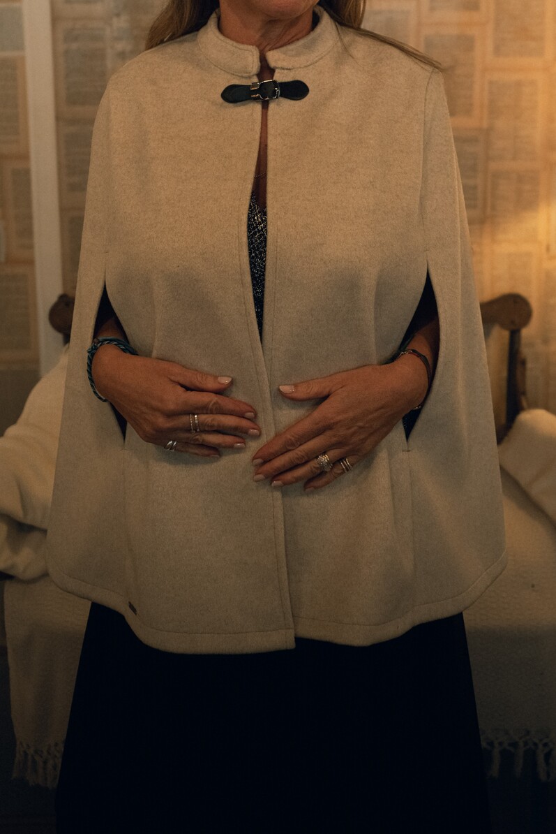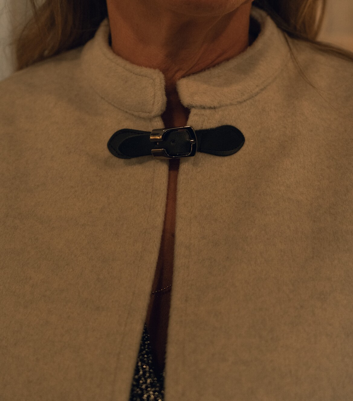 Capa gola oficial na cor cru , fivela em pele cor preta e abertura para braços.